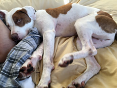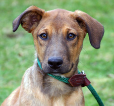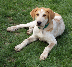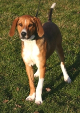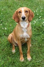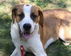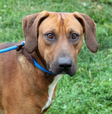 This hound mix puppy from West Virginia is 5 months old, 30 pounds, and moves at the speed of a Southern drawl. In fact, he is so mellow that he was quickly renamed Dozer by his foster family. It's fun to watch this adorable guy move around on his too-big feet and too-long legs (he looks like he should grow to be pretty big). He's gentle, sweet, and good with all dogs and people of all ages. Children are especially attracted to him. Dozer loves going for walks (he's pretty good on his leash) and playing in the dog park. He is almost house broken. Dozer has an obedient nature and will quickly stop what he is doing when he is told "no."