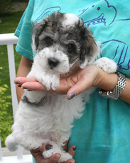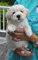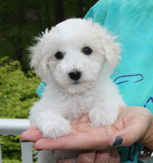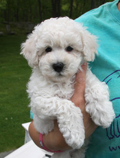 Talulah is a precious little Bichon/Poodle mix, about 7 weeks old and 2 1/2 lbs. She is very sweet, playful and too cute for words! Talulah is the only female in her litter; her mom is Chelsea and she is pictured last.