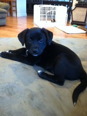 Tundra Melts Hearts We can describe Tundra in three words: gentle, gentle, gentle! The quintessential family black lab, Tundra's approx. 7 mos. old and around 30 lbs., loves everyone and all dogs, but especially children. She is sweet as sugar, highly intelligent, a little insecure (always thinks she's going back to the shelter), patient (except at mealtime...she's starving!), but NEVER "nervous" or snippy. She loves to play with her foster family's other puppy, who is around the same size (they like to play rough!). Tundra learns voice commands quickly, walks beautifully on a leash and is housebroken, with a low-to-medium energy level. When she finally realizes she's not going back to the shelter, she'll probably be more playful, but for now, she's content to be wherever her foster mom is, and do whatever her foster family does. Although she's probably never lived in a real home before, Tundra is very brave and handles new experiences like a champ. She sleeps pushed up against her foster mom and just can't get close enough. Thank you Andrew Ashcroft for sponsoring my vet care! Thank you to Molly's Birthday for sponsoring my ticket to freedom!