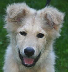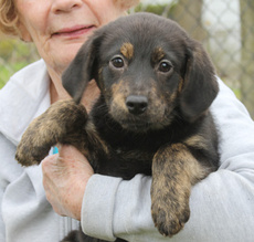 Twizzler is on of the "candy girls"...a litter of 5 female puppies also posted. The candy girls are shepherd/retriever puppies each with their own look, but sweet as can be. Twizzler has the most personality in the bunch, she is a people pleaser, but would love to be rolling around in the grass with the other dogs in her foster home. She is 9-10 weeks old and about 11 lbs. Click here to watch a video of the candy girls.