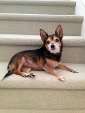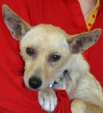 Twiggy is an adorable 7 month old Chihuahua mix and weighs about 6 lbs. She is very sweet and submissive, and loves to curl up on the couch next to you. Twiggy is good in the car, walks well on a leash and is almost housebroken. She is calm and quiet at home and does not chew on furniture. Twiggy is friendly with everyone; people, dogs, and cats. Because of her small size she would do best in a home with children over the age of 10.