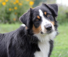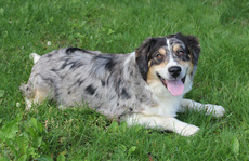 Tyler is a handsome Australian Shepherd mix, about 6 months old and 30 lbs. He is a very sweet, playful and curious boy- it's so much fun to watch him play and explore! He has a very sweet mild disposition and is very loving and cuddly with his foster family. He gets along great with other dogs and cats too! He is crate trained, doing nicely with his housebreaking and great in the car too!