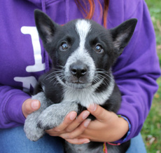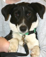 Tango is an adorable 4 month old male Border Collie Mix. What a sweetie pie. He is a little but shy, but loves to run and romp in the yard. He and his buddy Crystal, also posted, roll around and play all day. He loves his toys and is happy playing with people too. He will make a wonderful pet! He is about 15 lbs and is still growing.