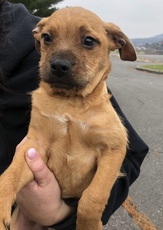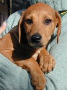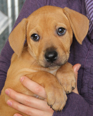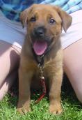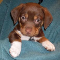 Twix is one of the "candy girls"...a litter of 5 female puppies also posted. Twix is the one who likes to be in charge. She is as confident as she is pretty. She loves to roll around outside with her siblings and would love to play with the big dogs too. She is the only red-head in the group and has a sweet face with dark brown eyes. She is 9-10 weeks old and about 13lbs. Click here to watch a video of the candy girls.