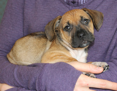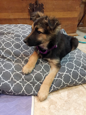 Taffy is an adorable 14 week old German Shepherd mix puppy. Very loving and affectionate. She loves to play with his foster siblings and her toys. She is very smart and already knows how to sit and lie down on command. Taffy is a fun, outgoing puppy who loves to run and play. She is already crate trained. Lets you know when she needs to go out. She would make a wonderful family pet.