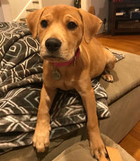 Hi! Meet Twizzler! Twizzler is a 18 lb lab mix born on June 25th, 2018. Twizzler is part of a litter of 7 puppies with delicious candy names.