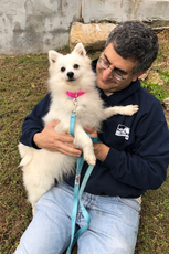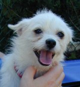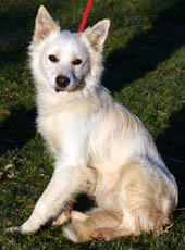 Twiggy is an 8-10 year old Pomeranian mix. She came to us severely underweight and neglected - you could feel every bone in her tiny body. She went right into a foster home where she was showered with love and TLC. Our vet discovered that it seems as if she has chronic bronchitis where the airways that transport oxygen from the trachea to the lungs become inflamed. We are working on managing this with daily medication. Now more than 3 months later, she has blossomed tremendously: her coat is silky soft, she has gained weight and there is a twinkle in her eyes. She is a super happy, sweet and playful little girl. She gets along great with the other dogs and cats in her foster home and tries to play with all of them. She is ready for a home with someone who will continue to dote on her and give her all the love she deserves. One look at her and how can you resist falling in love?!