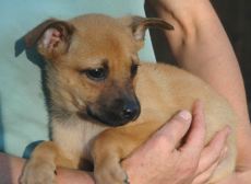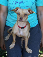 Taffy is an adorable, sweet, affectionate, and gentle 2 year old chihauha mix pooch. She is a perfect pet in this foster home of 2 cats, 4 family dogs, and her own litter of 5 puppies. She is an outstanding mom. Even though she is not longer nursing she is very attentive and loving toward them. She nuzzles, cleans and cuddles them. Taffy gets along with everyone-two legged and 4. She loves car rides and walks in the park as well as romps in the back yard with her brood and her foster siblings. Taffy is an active dog and has become the social director of the park- getting all of her friends playing tag. Taffy sleeps through the night, is well past the chewy stage and is housebroken. She will make a wonderful family pet.