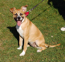 is as sweet as she is beautiful. She is very gregarious, friendly and gentle. She would love a playful canine companion to play with and a loving human to cuddle with. She is friendly with everyone; people, cats and dogs. She is about 30-35 lbs and around a year old. A very, very special girl! Please fill out an adoption application.