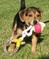 Tyson, one of Tisha’s pups, is a super cute approximate 10 week old beagle/hound mix. This little rascal is full of energy and loves to run and play either with his siblings or with just about anything he can. When he's done playing, he looks up at your with those beautiful, soulful brown eyes, just waiting to be loved. Tyson is close to being fully paper trained. Don't miss out on this special little sweetie.