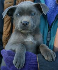 is an adorable little boy, about 8-10 weeks old and 9 lbs. He is very sweet and playful. Loves to smother you with lots of puppy kisses. He has beautiful velvety blue/grey fur with matching eyes. Please fill out an adoption application from our website.