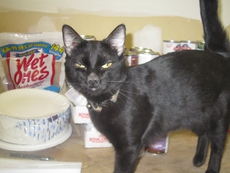 This all black handsome kitty is only 10 months old. Though found on the streets starving, Uncle Curtis is now thriving and proves to be a very playful, affectionate and friendly cat. Neutered and up to date with all vaccinations, Uncle Curtis is in excellent health and will be a wonderful family pet.