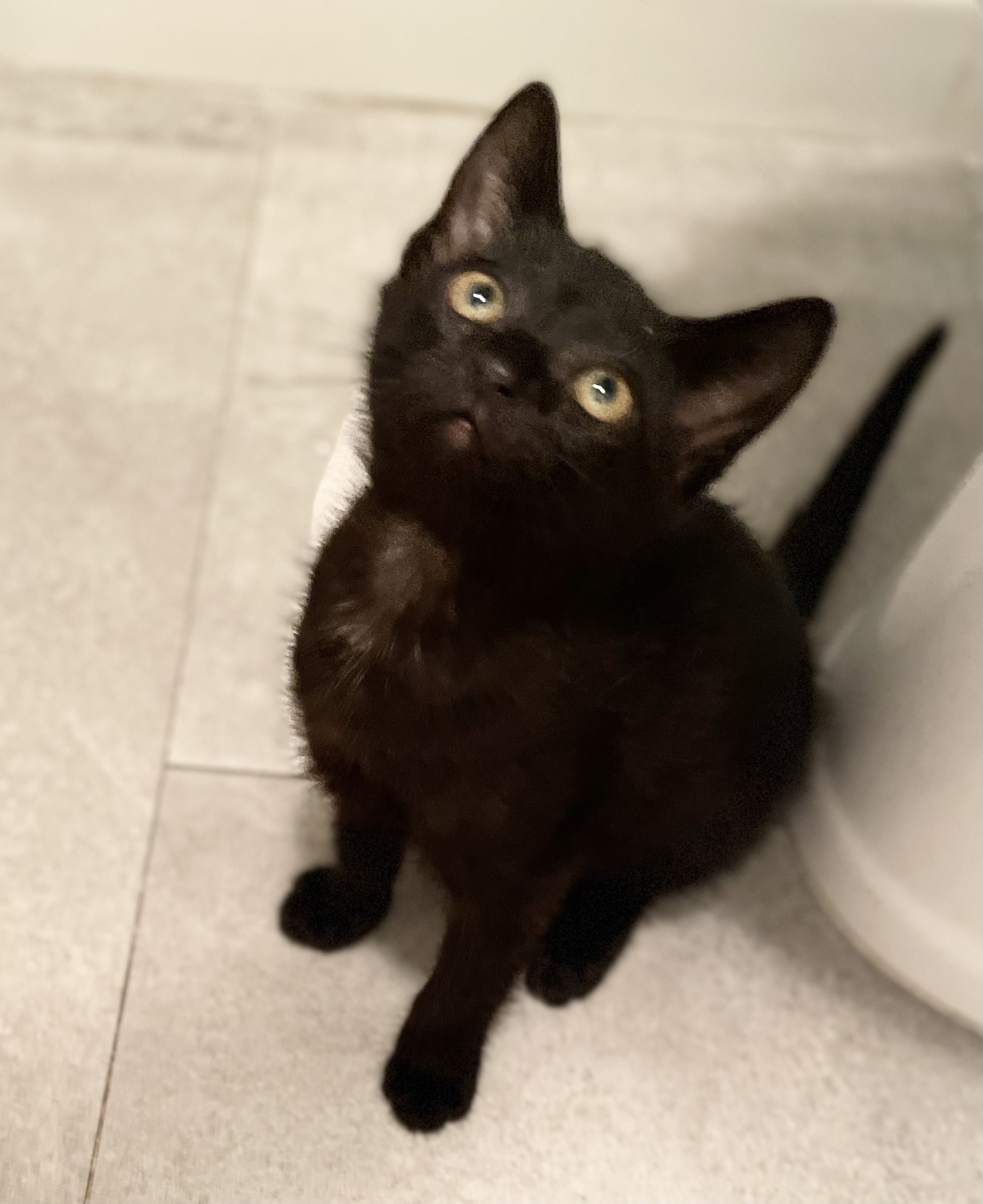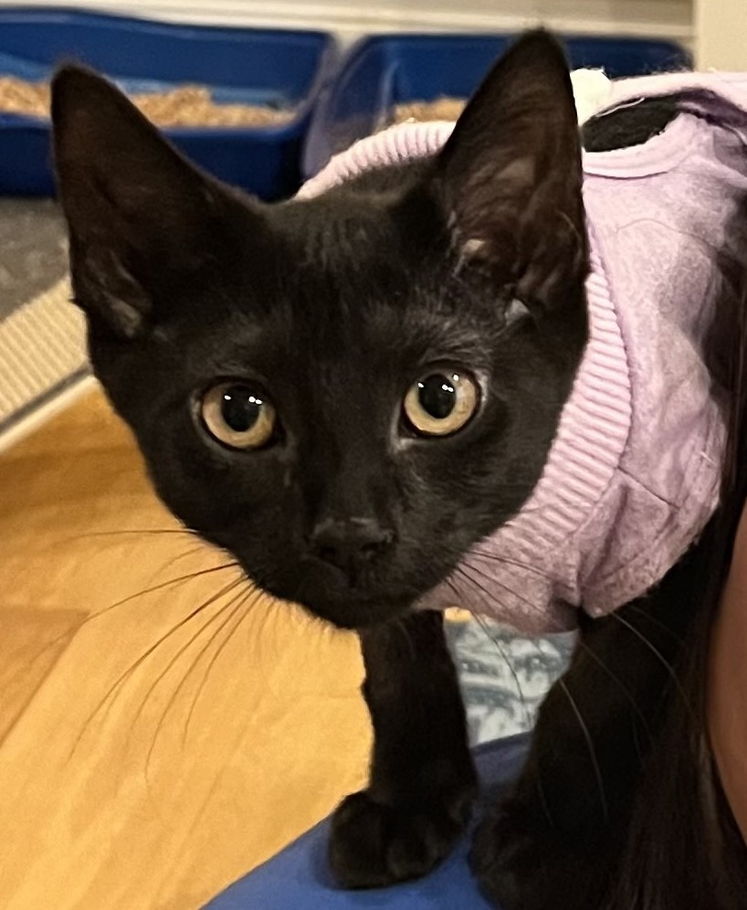 Only 1 females among Vera's Kittens remains to be adopted, E-Binx. This adorable, black kitten was born on May 15, 2016. E-Binx loves to play and run around. When you pick her up, she will love your cuddles and kisses. cc