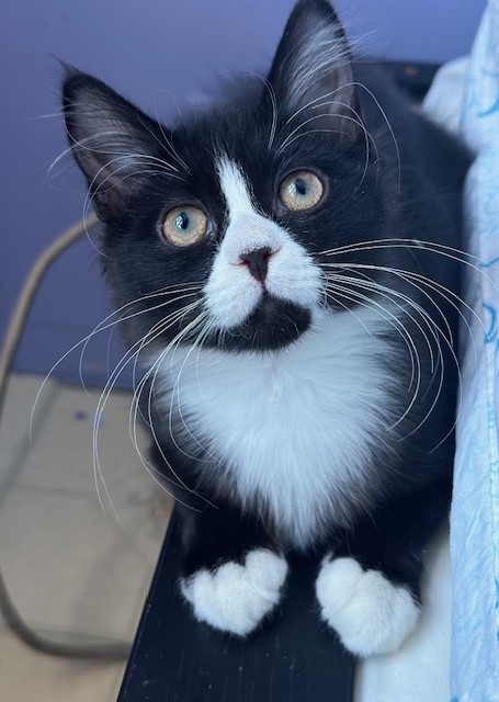A very sweet and loving 4 month old Tuxedo kitten.