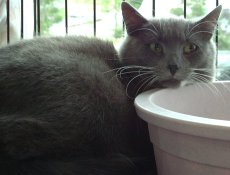 Vanessa is a 10 year old Russian Blue female whose beloved owner lost her home and put Vanessa onto the streets to fend for herself. She is a very sweet and calm feline. Vanessa now resides in a great foster home where she is surrounded by other cats and dogs, and gets along with all.