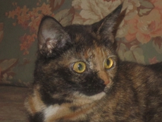 Veronica is a charming tortie/calico mix, about 3 years old now, who was rescued from under a porch, sick and with kittens. Now in splendid health, Veronica is very playful, fun and affectionate. Spayed and up to date with all vaccinations, Veronica will be a delight in your home. She shares a foster home with other cats and dogs and gets along well with all.