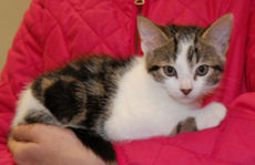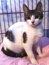Violet is one adorable kitty, very sweet and friendly with a cute little pink nose and pretty grey and white coat. This sweetheart came to us with her kittens, who have all been adopted. Violet loves people, enjoys being petted, and now it's her time to find a loving, permanent home.
