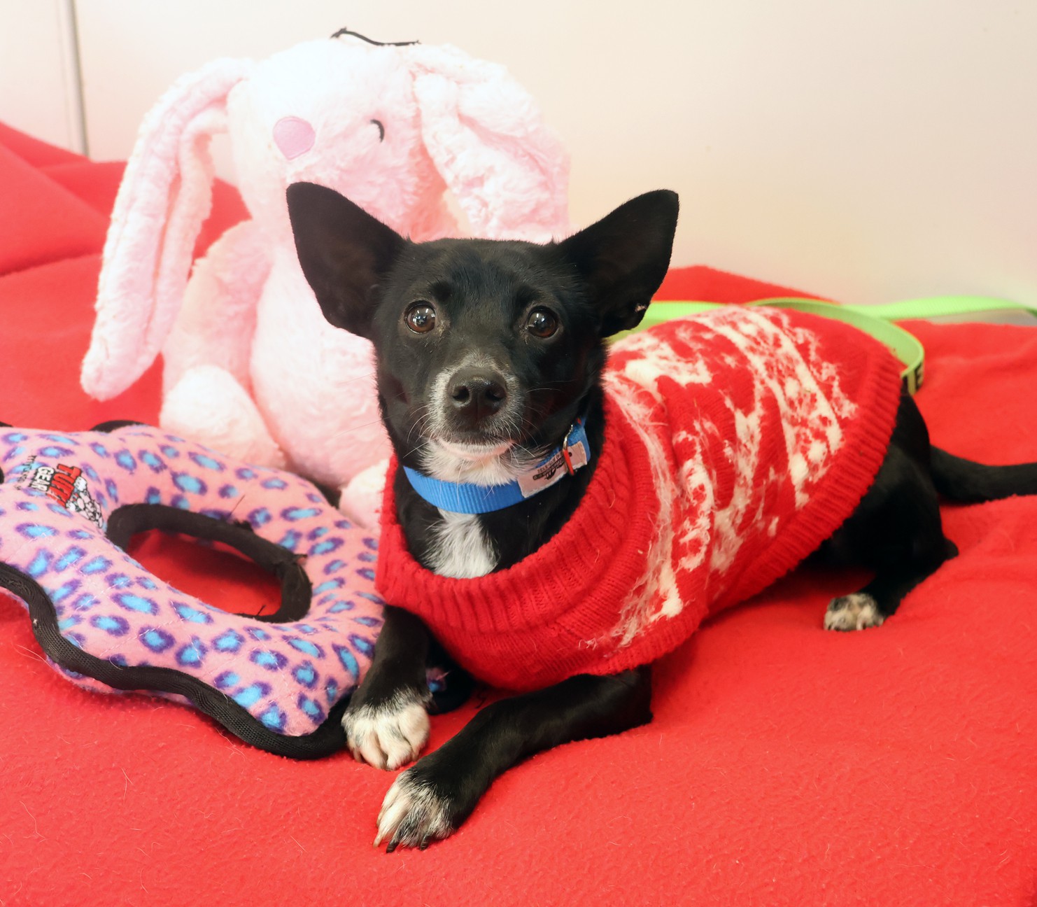 Vee is a super sweet approximately 3 year old Chi mix. She is housebroken, crate trained, and has excellent manners. She loves everyone: kids, dogs, cats...anyone willing to cuddle or play. She absolutely adores playing fetch and enjoys a good tug-o-war. Vee is a super girl ready to share her lively and loving spirit with anyone.