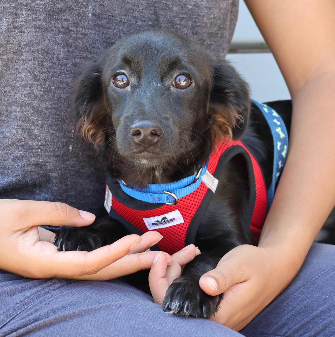 Vanna is about 5 years old and 15 lbs. She loves to follow her nose to all the interesting scents outside and then come home and snuggle up with you. This is a very special girl that captures everybody's heart. She is so sweet and gentle and very content. She is the kind of dog that makes you smile with her happy yet calm energy. She enjoys the company of people and other dogs & wags her tail with joy when she sees you. Her foster mom says: Vanna is a sweetheart. She gets along with other dogs and likes to play. She loves people and is very gentle. Vanna likes to hang out on the couch. She is calm and also curious. She would like to be part of a loving family that would include her in their activities.