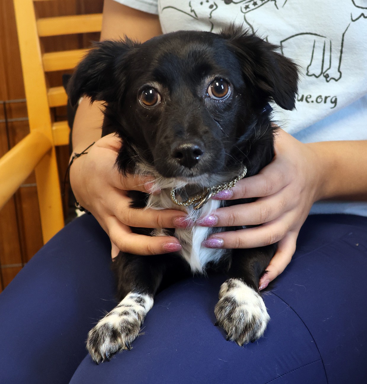 Velvet is a delicate 5 month old, 11 pound black puppy with a white chest and a little white on her paws, as if she is wearing booties. Like her siblings, she is very friendly, sweet, and totally delicious. Be sure to complete an application on line and come to our Meet & Greet Saturday 11:30-1:30. If you are interested in this dog, please submit an application directly to our website at www.ny-petrescue.org. Only applications submitted directly to Petrescue will be considered.