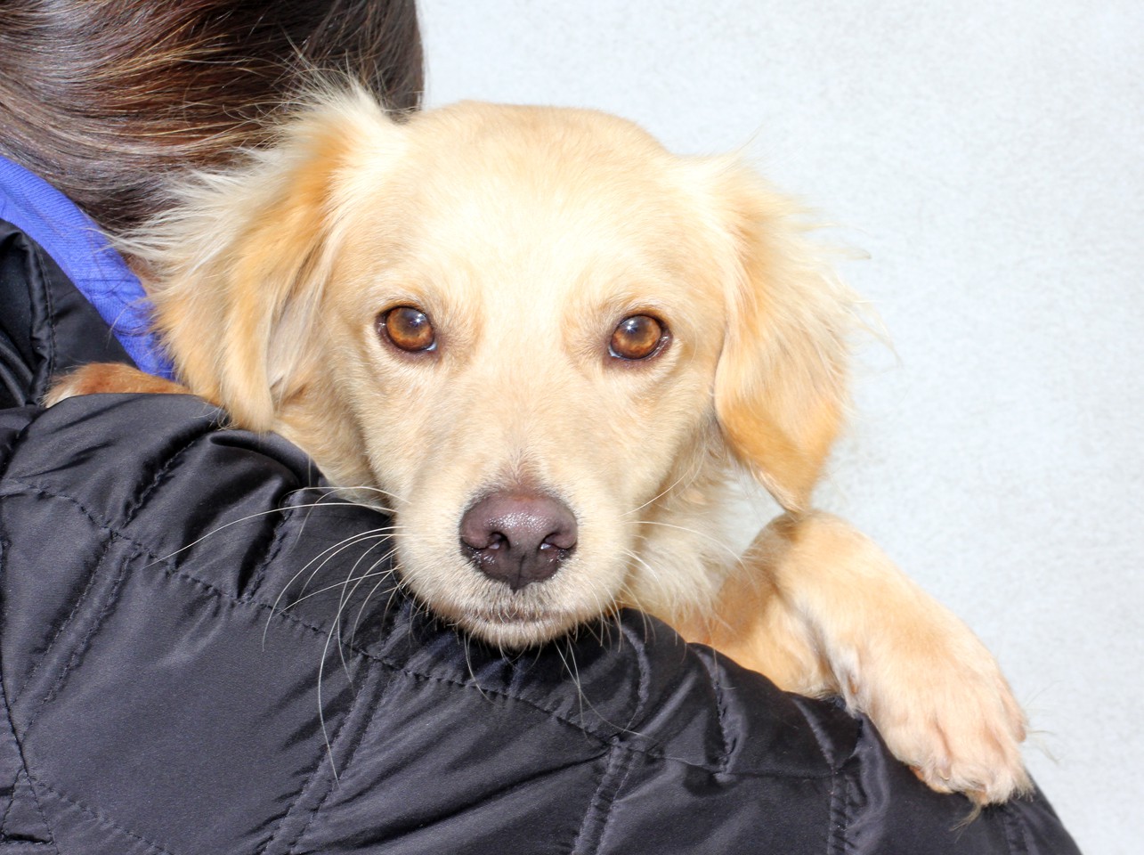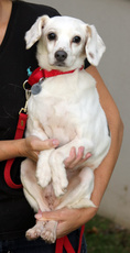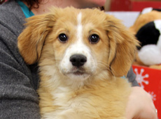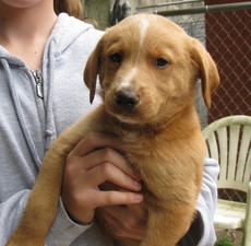 is a beautiful, fluffy Golden mix, about 10-14 weeks old and about 12 lbs. She is outgoing, playful and just adorable. She was abandoned with the Norfolk terriers and the poodle mixes. We don't know how big she will be since she still has all her puppy teeth. She might end up being quite a small dog. Either way, she is a very happy and outgoing girl. This is a great family dog for people with older children. She just loves to give kisses and be cuddled. Please fill out an adoption application.