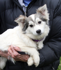 Violet, is a 5 month old, 16 lb., fluffy Papillion/Collie mix with gorgeous gray markings that make her look like a little wolf. This sweetheart takes a few minutes to warm up to strangers, but certainly loves her people...rub this cuddly fluff's head and she just closes her eyes and soaks it up, snuggle her real close and she just relaxes into your body. Violet absolutely loves playing, both on her own, carrying around her ball or with her sister, Magnolia, as well as with the other dogs in her foster home who come in many sizes. When she's done, you can usually find her resting or happily chewing on her kong. This love sleeps quietly through the night and is both crate and paper trained. If you want to give a home to a sweet little angel, then Violet is just the right girl for you. Violet would not be good in an apartment. Click here to watch a video of Violet.