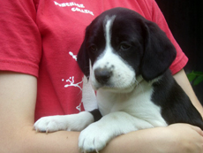 Vinnie is a sweet pup. He is a shepherd/lab mix, about 9 weeks and 10 lbs. His mother is Rachel, also posted. He is a typical puppy, likes to run, jump and play.