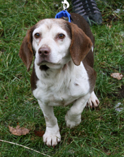 Velvet is an 8 years young, very sweet beagle/spaniel mix. She is playful and well mannered in her foster home and gets along with all her foster siblings. She loves people, and is not shy meeting new people. She loves to sit with her foster mom and cuddle on the couch. She walks extremely well on the leash and does not pull. She does have a medical condition which is managed very well with one pill per day, which she takes easily in her food. She is the perfect lady for someone looking for a companion.