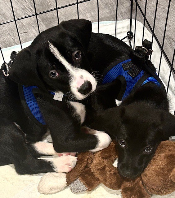 Wendy and her brother, Bob are about 9-10 weeks old and weigh around 13 lbs. They are sweet and playful puppies. Please fill out an adoption application.