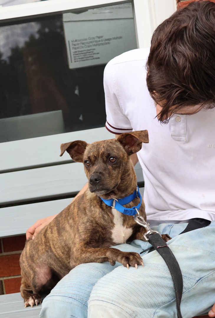 Walmart is a new arrival at Petrescue and we are just getting to know her... and she is getting to know us. We think we can guess where she was found when rescued! She's a beautiful little girl with a stunning brindle coat, and enjoys the company of other dogs. Walmart is a little shy with people and is learning that the volunteers at Petrescue are her friends and the world is a friendly place. Walmart will sit quietly by your side and watch the world go by...She wants love and lots of pets. Be sure to complete an application on line and continue to monitor our website for updates. If you are interested in this dog, please submit an application directly to our website at www.ny-petrescue.org. Only applications submitted directly to Petrescue will be considered.