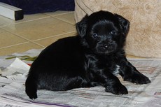 black fuzzy male, one of Lena's pups.