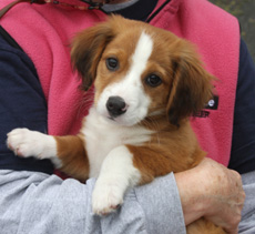 Wylie is a Spaniel/Otter mix and is about 8 weeks old. He is bounding with energy and exuberance! He is loveable and ready to play with anyone -or any dog- he meets. He has a sweet personality and the sound of your footsteps approaching his pen are like music to his puppy ears! He loves to play and tumble with his brother Wally.