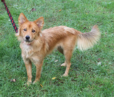 Winston is a very handsome 18 month old Pekingese/Spaniel mix. His coat is a gorgeous long haired red and white and his face is a cute snub nosed peke quality. Winston gets along with all other four legged critters. He is still shy around people but coming around. Once he is comfortable he is a real snuggler. He will curl up on a lap and nuzzle. Winston would love a yard to explore and maybe another dog to play with.