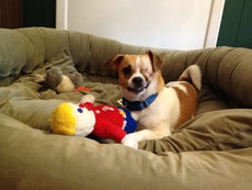 Wilson is a playful boy that loves to catch and run around with his ball. He is great with other dogs and loves people. At about 1-2 years and around 15 lbs, he seems like the perfect little boy.