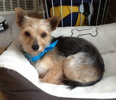 Hi, my name is Wyatt and I'm a sweet, friendly 1 yr old, 9 lb Yorkshire Terrier. My foster mom absolutely adores me and tells me how smart, playful and affectionate I am. I sleep through the night in a crate without a peep and I'm doing very well with housebreaking. I learned the routine of my foster home very quickly and will wait by the door if I have to go to the bathroom. I LOVE playing with toys and other small dogs. I need an adult only forever home (not a fan of young kids) and would really enjoy another playful furry sibling or regular trips to a dog park.