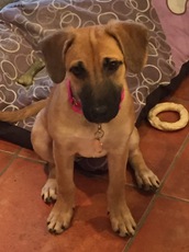 Hi! My name is Winnie. I am a 4.5 month old winsome lab mix, weighing in at about 20 lbs. My foster mom and her kids love my sweet, playful personality. I love a good romp (fetch!!! Toys!!!), but I also am happy to quietly settle in my bed with a good bone. I am good with other dogs and great with kids. My potty training is coming along at warp speed, and I am working on my crate training (I do really well in an X-Pen, with a wee wee pad and a bed). I would make a fabulous addition to any family and would do best in a family with another dog.