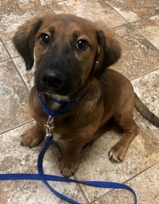 Calling all Dachshund lovers! We've got 3 of the most adorable Dachshund mixes you'll ever see. Wilma is approx. 5 months old and weighs about 23 pounds. She is very intelligent, sweet and loving. Although she loves playing with other dogs of all sizes she loves her people best. She follows her foster mom everywhere. If snuggling was an Olympic sport she'd have a gold medal! Wilma is crate trained and knows a few tricks. Her favorite sport is doing puppy zoomies in the yard with her siblings Dino and Bam Bam and all their doggie friends. She would probably love doing agility training. Since she's not a barker, she'd be great in a house or apartment. Wilma has already been spayed and is up to date on her shots so she's ready for her forever home.