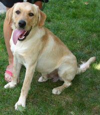 is a gorgeous Yellow Lab, quite possibly a purebreed. He weighs about 60 lbs and is under a year old. He is playful, loving, likes attention and plays well with other dogs. Good with kids but he is a big puppy and does still jump up. He is about 80% housebroken. He wants to play, play, play. Wilson is just stunning and receives many compliments when walking around town. He is very smart and starting to learn basic commands. Please fill out an adoption application.