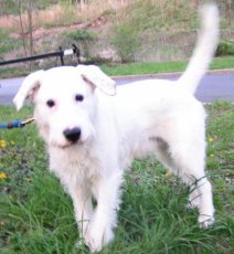 is a 3-4 year old white terrier mix with a face of a jack russell who weighs about 24lbs. Webster has a good disposition and loves people. He is good with kids who are old enough to understand how to handle dogs. Webster does not get along with other dogs, so he will need to be the only dog in the house. Webster is house trained and loves to lay on the couch to be petted. He likes to go on walks but is easily distracted by any noise or movement of small animals.