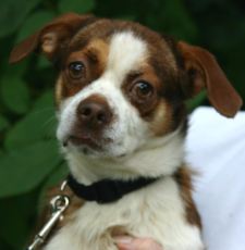 Whisper looks like a Boster Terrier/Cavalier King Charles mix, about a year old and 19 lbs. This little guy is very sweet, affectionate and playful. Loves to chew his nyla bones and chase a ball. Also loves to cuddle and watch TV with his humans. Loves to be with people - is good with kids and dogs too. A very special boy who deserves a special family.