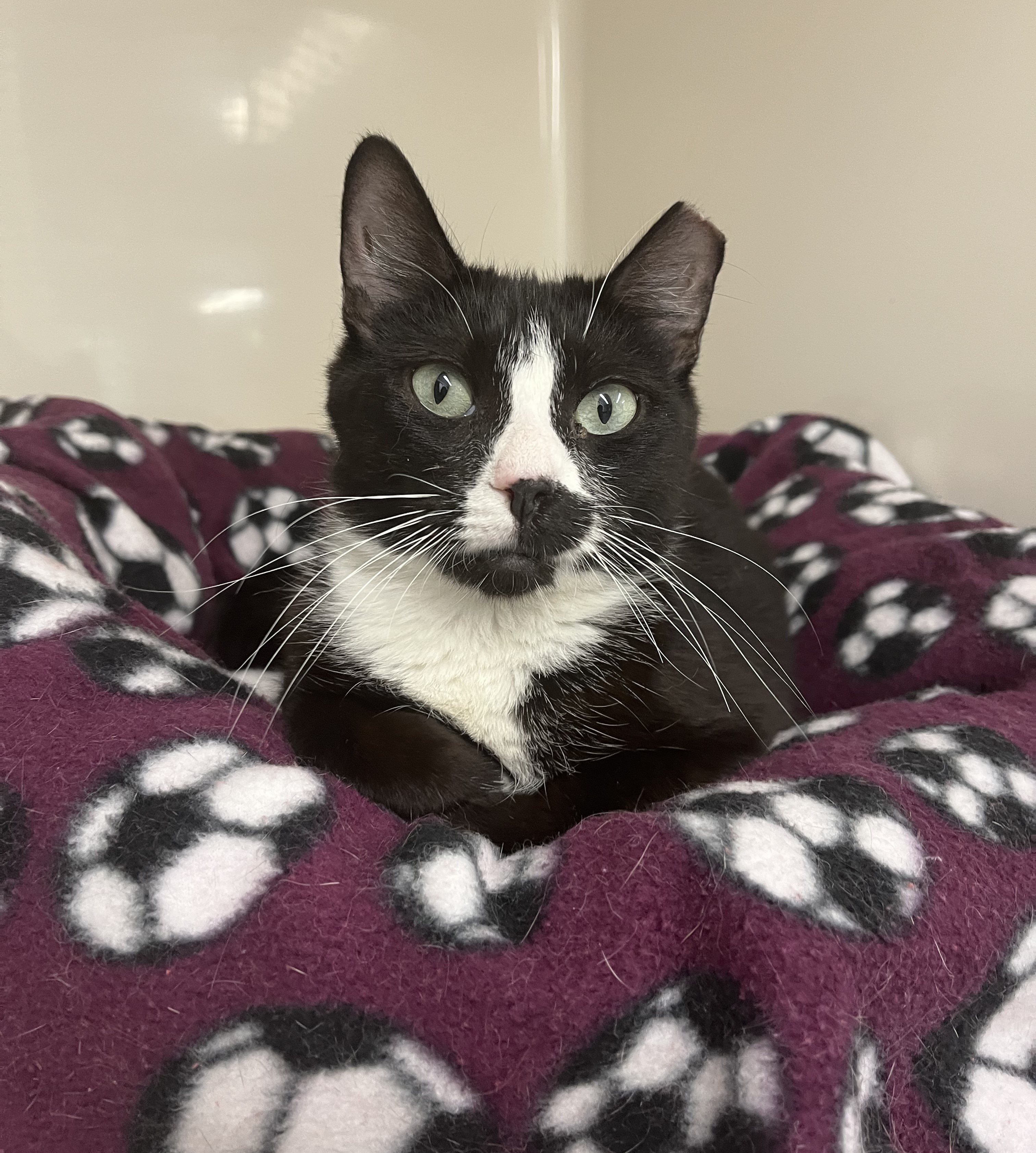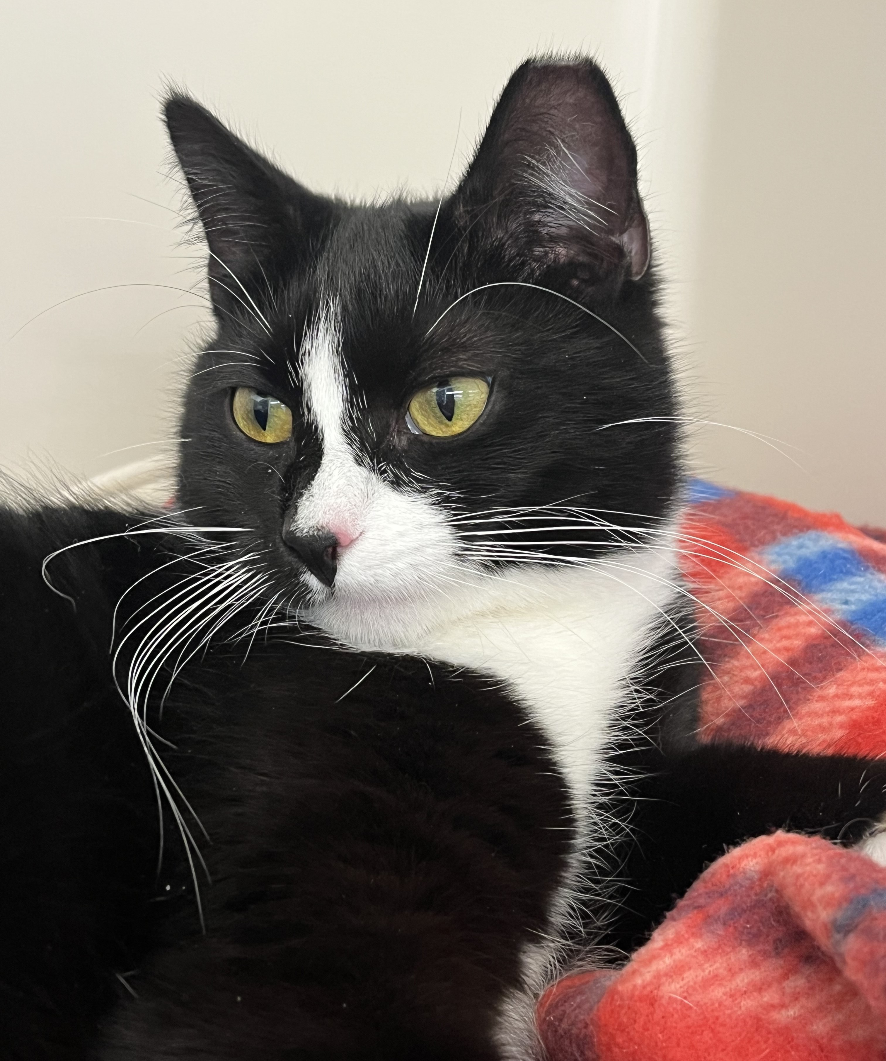 TILLY Looking for a good home for a beautiful tuxedo cat, now approx. 2 years old. This is Tilly. Her sister Valentine is being adopted and now Tilly needs a home of her own. Tilly is fully vaccinated and spayed, in excellent health, very playful and just a little bit shy. She is dog friendly with small dogs. To learn more about Tilly, please contact Emily at emily.mainphotography@gmail.com.