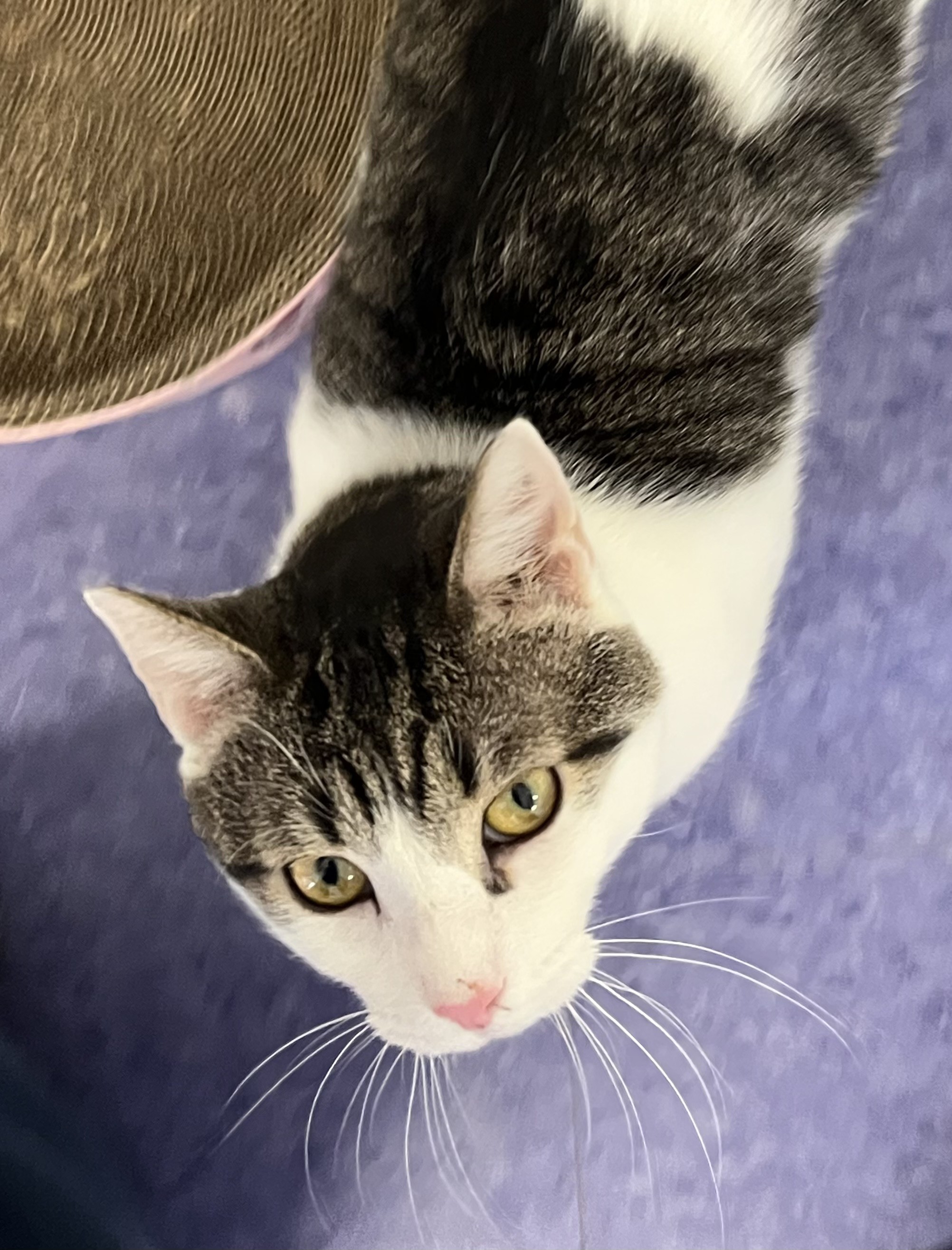 Born September 2024 This petite girl was found in the Bronx. She was moving between two lots with a barbed wire fence in between. Maya arrived with a few scratches but has healed well. She has a charming personality and likes to circle legs to ask for pets. Maya is quiet but playful. She does like to snuggle in small spaces for naps but also enjoys window views and cozy couches. It's hard to believe but Maya never misses a meal and treats are her favorite dessert. She's comfortable with other cats but would prefer a home without dogs.