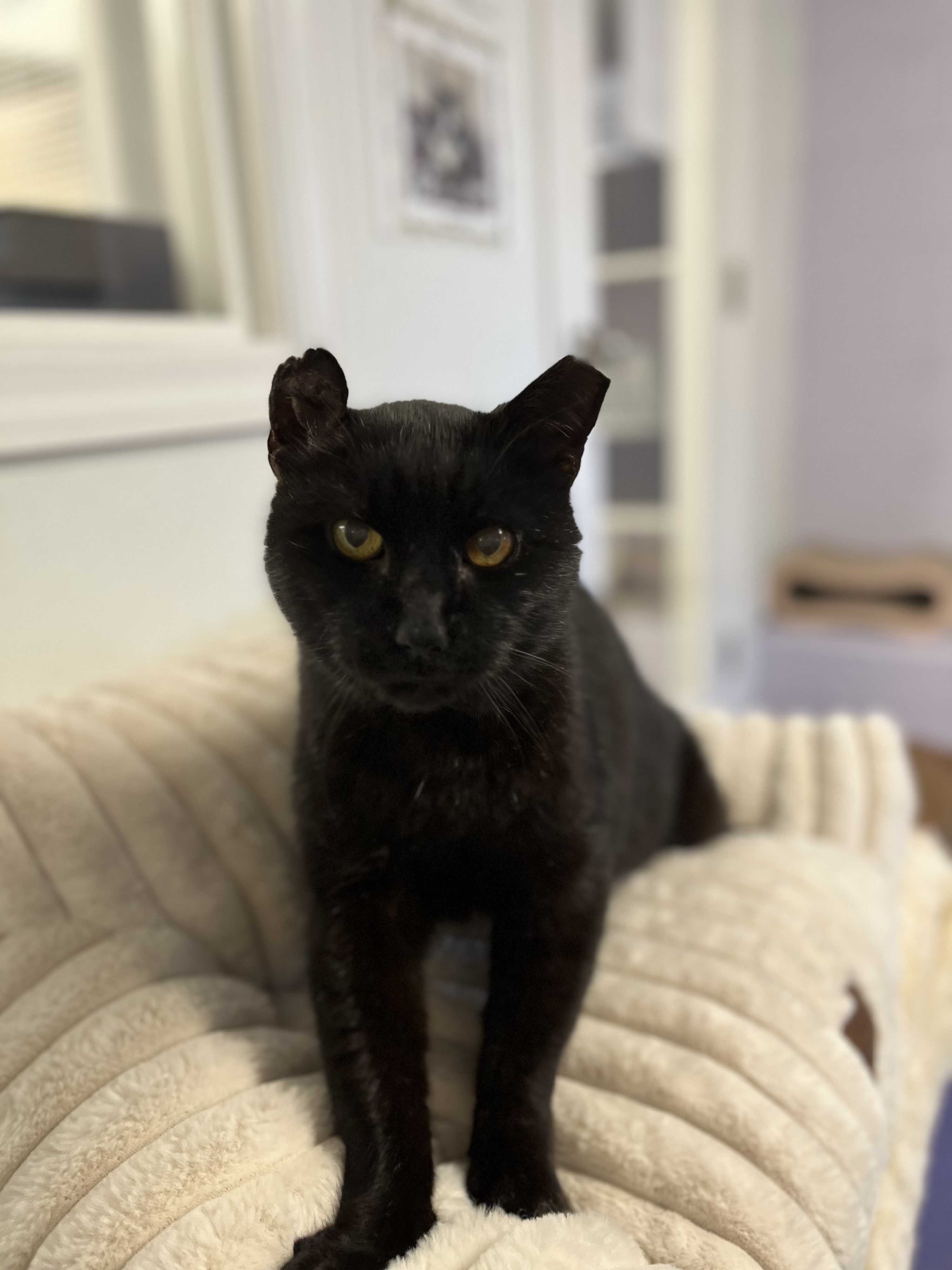 Born January 2023 Pine Cone is a purrrfectly lovely young lady. She's friendly, affectionate and playful. Pine Cone is eager to spend time with her human friends and often rolls over for attention. She's a quiet cat with an intense gaze...we wonder what she's thinking?! Pine Cone enjoys watching the world outside but she's quite content inside snuggled in a comfortable cat bed. Pine Cone gets along with other feline friends.